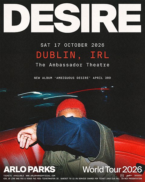 Sweating under the strobes at Midnight Lovers in LA, dancing to the bass beneath the K Bridge in Greenpoint, finding new faces at Venue MOT in London – these are the dark, enveloping spaces giving life to Arlo Parks’ powerful third album, Ambiguous Desire. “I fell in love with nocturnal spaces over the past two years of writing this album,” Parks says. “These were places where I could be whoever I wanted to be on that night, from staying on the fringes to throwing myself into it completely and escaping for hours on the dancefloor. It was so playful, being able to lose yourself and then reemerge into the world. Every time I came out into the daylight, I felt so inspired.” The result is 12 tracks of the British singer-songwriter’s most vulnerable, self-affirming and euphoric music to date. From the pirate radio breakbeats of “Get Go” to the shimmering chords of “Beams” and the soulful Sampha-collaboration “Senses,” Ambiguous Desire sees the 25-year-old Parks at her most confident and experimental. Two-time Grammy-nominated singer-songwriter and Mercury Prize winner Arlo Parks has announced a headline show at Dublin’s Ambassador Theatre on Saturday, 17th October 2026.