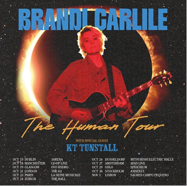 Brandi Carlile has announced that award-winning singer-songwriter and very special guest KT Tunstall will join her on The Human Tour when it reaches UK and Irish shores this October, as well as when they take the show on the road through Europe. KT will delight the crowds with her much-loved repertoire before Brandi takes to the stage at 3Arena Dublin on 15th October 2026.