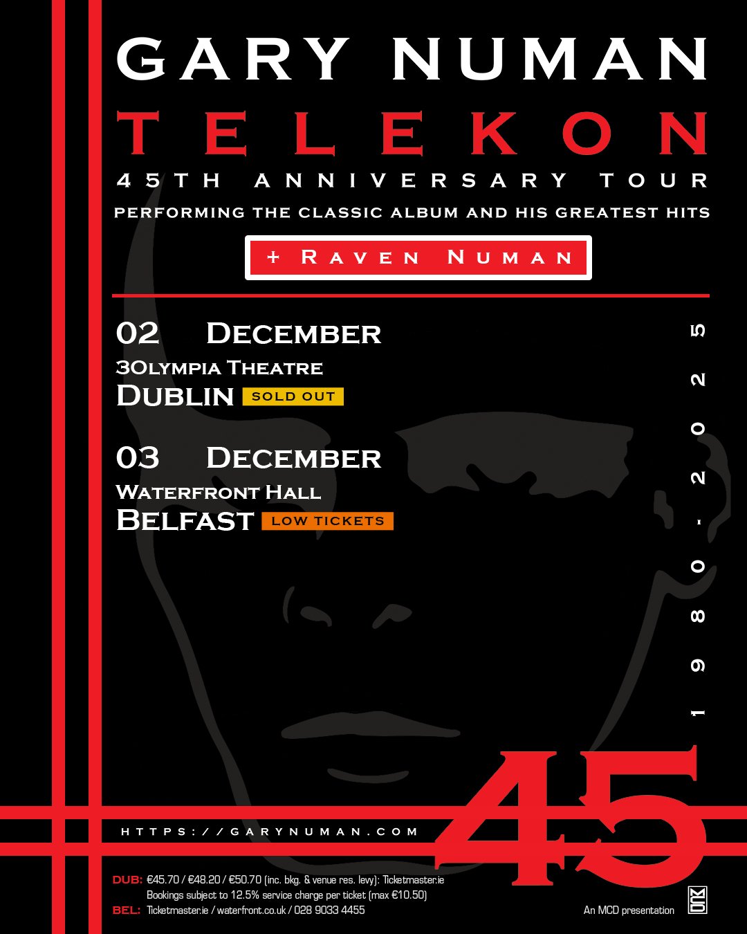 Electronic music pioneer, revered songwriter and renowned musician, Gary Numan has announced 3Olympia Theatre, Dublin – 2nd December 2025 – SOLD OUTthe Waterfront Hall