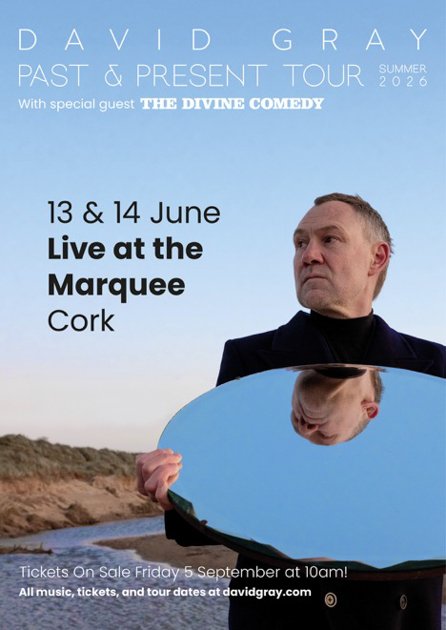 DAVID GRAY today announces a brand-new summer run of UK & Ireland dates for June–July 2026 as part of his Past & Present World Tour. The announcement includes 2 Shows for Cork on Saturday 13 and Sunday 14 June 2026 – making DAVID GRAY the first Artist to announced for the 2026 Live At The Marquee series.