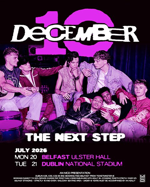 Britain and Ireland’s brand-new boyband December 10 today announce December 10: The Next Step – kicking off in Edinburgh on Friday 10 July before coming to Ulster Hall, Belfast on 20th July and wrapping in Dublin’s National Stadium on 21st July 2026.