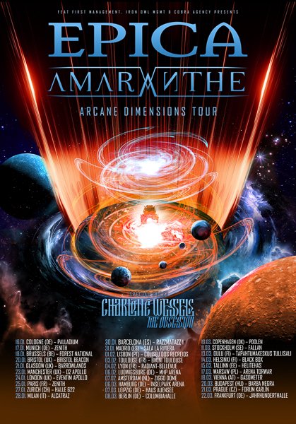 From January till March, EPICA will embark on ‘The Arcane Dimensions‘ European Tour with Amaranthe and Charlotte Wessels’ The Obsession, that brings three of the genre’s most dynamic forces together for an unforgettable live experience. See the full list of dates below and grab your tickets now!
