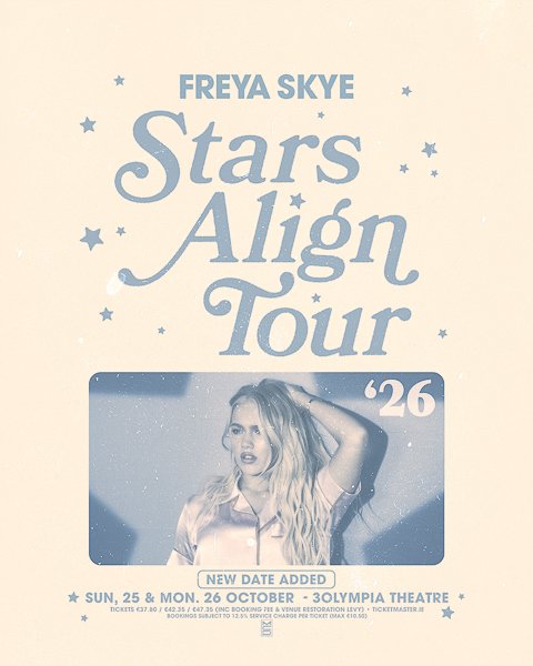 Due to demand, British singer-songwriter Freya Skye has announced a second show in the 3Olympia Theatre, Dublin on 26th October 2026 as part of her Stars Align Tour.
