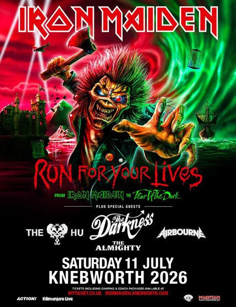 Following last week’s announcement of IRON MAIDEN’s European festival & stadium tour for 2026, bringing their highly acclaimed RUN FOR YOUR LIVES WORLD TOUR to even more countries in Europe, Kilimanjaro Live, in association with Phantom Music Management, are delighted to announce that IRON MAIDEN will return to the UK next year for an enormous outdoor headline performance at the legendary Knebworth Park.