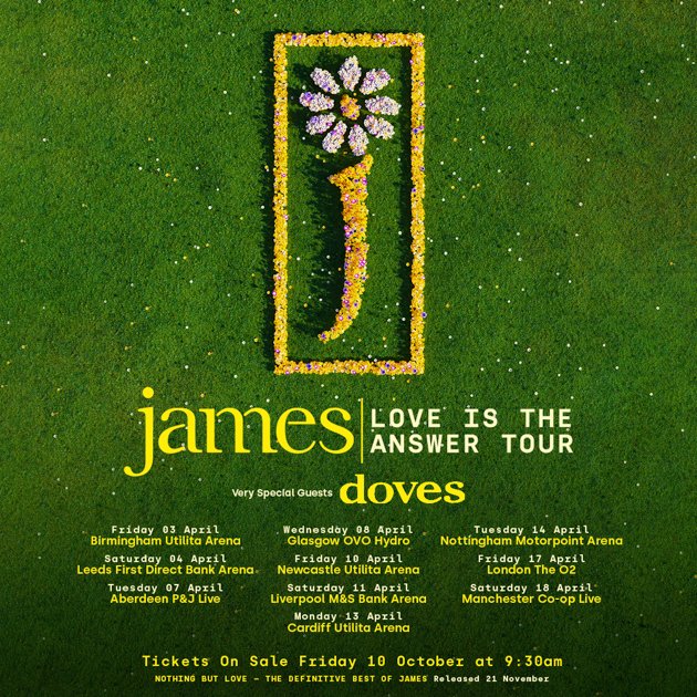 James have also announced their biggest ever arena tour for April 2026. The dates include Birmingham Utilita Arena, Leeds First Direct Arena, Glasgow OVO Hydro, Liverpool M&S Bank Arena and London O2 Arena, culminating at the 20,000 capacity Co-op Live in Manchester. The band will be joined on the dates by special guests Doves.