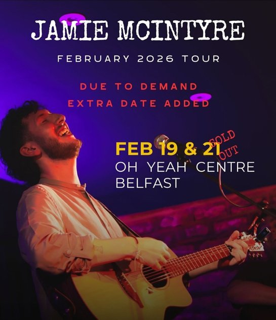 Galway songwriter Jamie McIntyre has announced an extra Belfast show for February 19th, 2026 following exceptional demand. The original Belfast date at The Oh Yeah Centre on February 21st sold out almost instantly, prompting Jamie to add this second night to his 2026 tour.