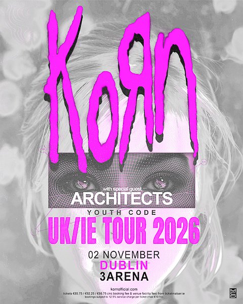 KORN have announced their monumental return to Ireland, as they are set to play the 3Arena, Dublin on November 2nd for their first show in over a decade. They will be joined by special guests ARCHITECTS and YOUTH CODE.