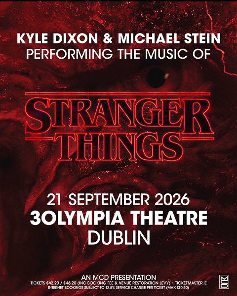 Following the epic conclusion of the Netflix global phenomenon Stranger Things, Emmy-winning composers Kyle Dixon and Michael Stein (of the band S U R V I V E) return to the stage for the definitive live celebration of the entire saga, including a headline show at Dublin’s 3Olympia Theatre on Monday, 21st September 2026.
