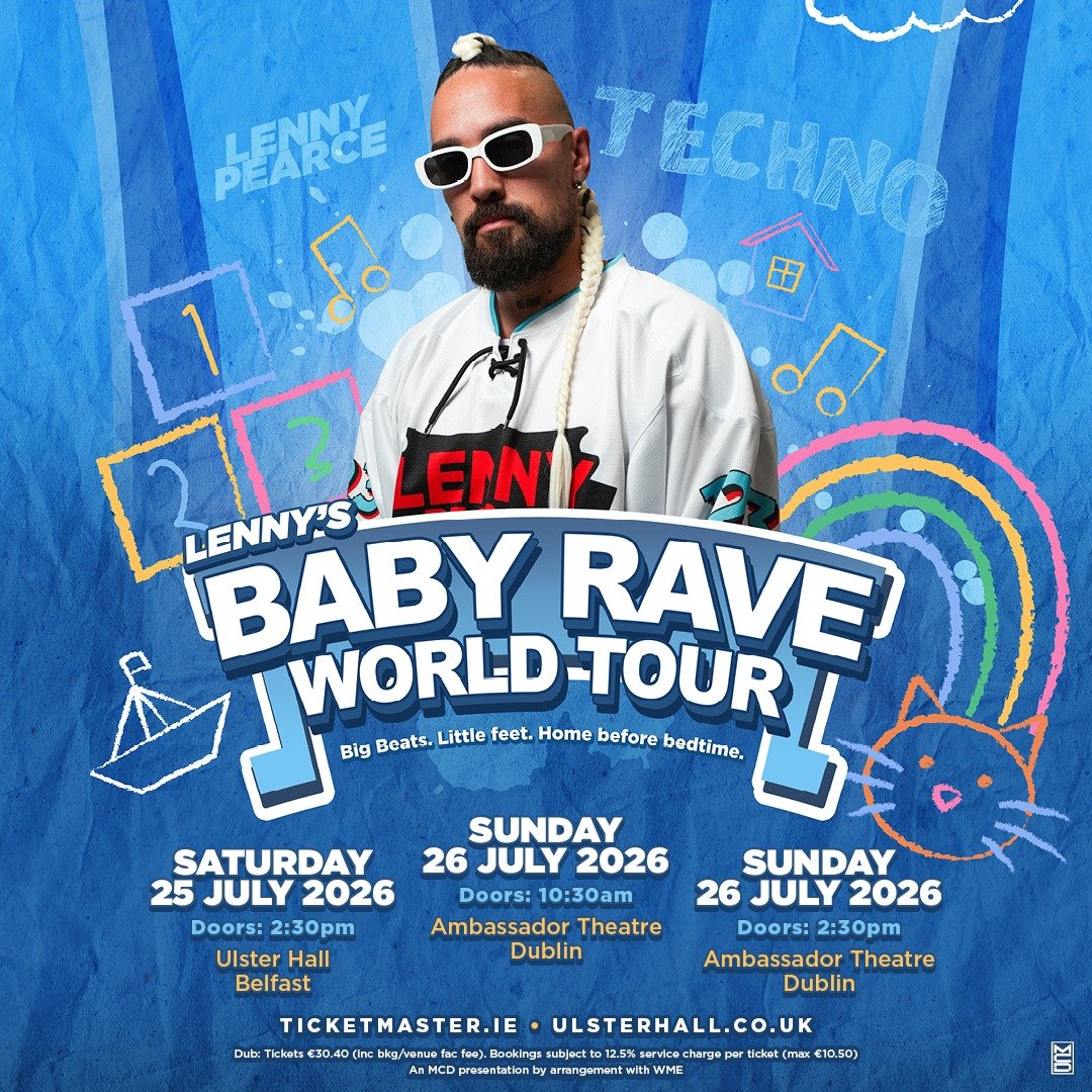 Lenny Pearce is a force in family entertainment, captivating a global audience as the pioneer of ‘Toddler Techno’ and ‘Baby Raves. ‘Driven from his passion as a father, and his strong commitment to his home life, Lenny’s ability to make songs and videos, and perform live shows that enchant families is second-to-none. Lenny Pearce is now set to bring the Baby Rave World Tour to The Ambassador Theatre, Dublin with two shows on Sunday, 26th July 2026.