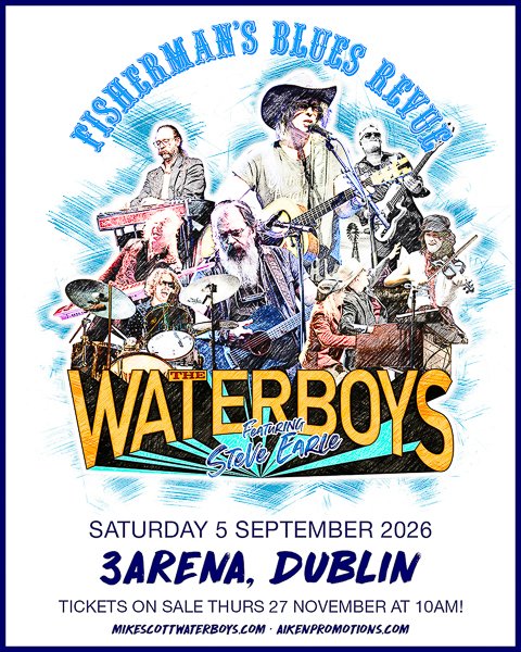 The Waterboys will perform a very special series of dates in Dublin, London and Glasgow in August and September 2026 under the banner THE FISHERMAN’S BLUES REVUE. The shows will celebrate and explore the music of the Waterboys’ classic Fisherman’s Blues era of the late 1980s. This will include 3Arena Dublin on 5th September. Tickets for this date go on sale this Thursday 27th November at 10am from Ticketmaster.ie
